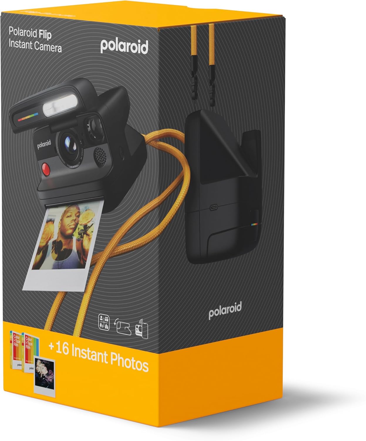 Flip Instant Camera + Color Film Bundle (16 Photos Included) – Black (6565) – Hyperfocal 4-Lens System, Sonar autofocus, and Sence Analysis with Bluetooth paired Companion app