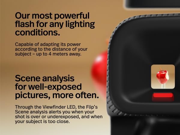 – **Hyperfocal 4-Lens System:** Equipped with an advanced 4-lens system, the Flip Instant Camera ensures each shot is crisp and clear, providing superior image quality that captures every detail.